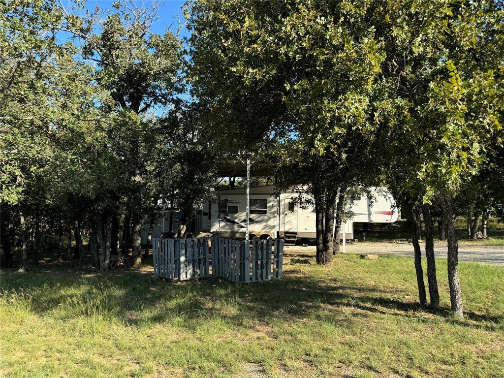 If you are looking for a place to escape all of life's stresses without breaking the bank, this is the place for you! Surrounded by numerous oak trees sitting on a corner lot lies your Texas paradise. This recreational haven offers four RV lots, 1000 gallon septic tank, storage building, covered RV parking, firepit, full use of HOA facilities including pool, playground, boat dock, and fishing pier, 30 amp and 50 amp hookups. Approx measurements of the carport are Height 14ft, Length 27ft, and Width 20ft. THIS DOES NOT INCLUDE THE RV, IT WILL BE MOVED FROM THE PROPERTY.