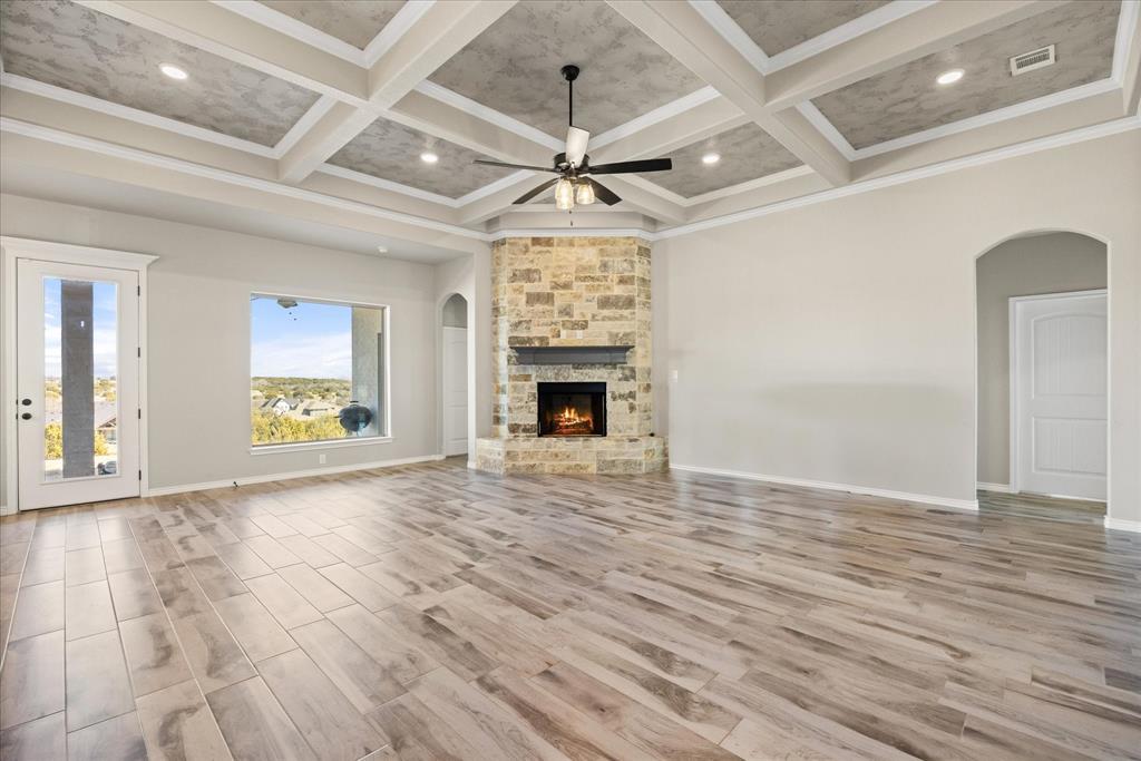 HUGE PRICE REDUCTION!! BRING AN OFFER!! Custom built home in prestigious Rolling Creek Ranch. This beautiful custom home built in 2022 features a modern layout and high-end features. With a modern gray paint-scheme and design, it offers tiled flooring, custom coffered ceilings, custom cabinetry and trim, huge chef's kitchen with counter to ceiling stone backsplash, large island and double ovens and large walk-in pantry, large master suite with his-and-her master closets that connect directly to the expansive laundry room, 3 spare bedrooms with 3 full baths, a dedicated office and dining room with a breakfast room off the kitchen. This home is perfect for a large family or for entertaining guests and family. Situated at the top of a hill that overlooks lake Granbury on an over 1 acre lot. The backyard is expansive offering huge possibilities with plenty of room for a pool or out-building. A rear-entrance garage door for your golf cart or lawn equipment is available as well. Built with efficiency in mind with double-paned windows, efficient HVAC, tons of insulation, efficient SS Energy Star appliances all means huge savings on your utilities. Come enjoy the pristine serenity of this quiet subdivision today!