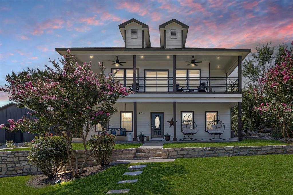 MOTIVATED SELLER! $5,000 CREDIT!* This is the Lake Granbury lifestyle you’ve been dreaming of, and it won’t last long! Imagine swinging on the daybed while basking in sunshine and taking in jaw-dropping, panoramic views. Step inside to a spectacular Hill Country retreat with soaring open-concept spaces, a chef-inspired kitchen with stainless steel appliances, gleaming white cabinetry, granite countertops, and a spacious dining area that flows seamlessly into a window-lined living room with endless lake views! The primary suite is pure luxury—a serene bedroom retreat overlooking the lake, connected to a spa-worthy 5-piece bath with soaking tub, dual granite vanities, and a custom walk-in closet! Upstairs, discover a second living area, open flex space, an oversized modern bathroom and two huge bedrooms, each offering more breathtaking views from inside or out on the wraparound balcony! Step outdoors and you’ll think you’ve arrived at a high-end resort—peaceful lounging spaces, elevated green space perfect for a pool and plenty of room for entertaining! Bring the boat or jet skis—your private neighborhood boat ramp & park is just 3 minutes away! Bonus perks: RV parking and endless options for lakeside fun! This modern lakeside escape is a rare find — and it’s ready now! Schedule your showing today before it’s gone! - No HOA! - Pool Estimates and Garage Estimates Available! - Furniture available to be purchased separately! - Exclusive Lender Incentive! -