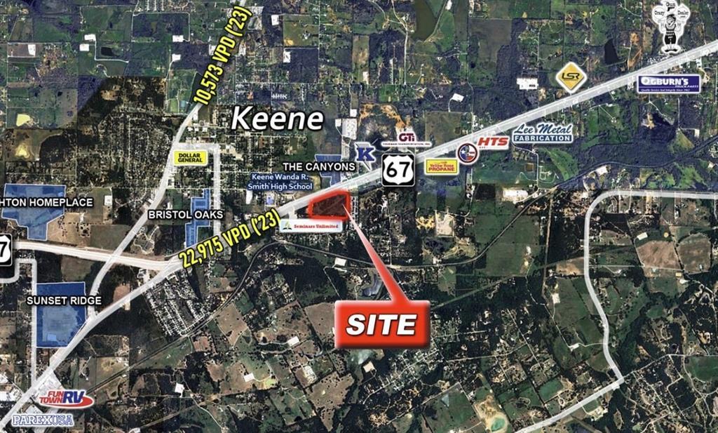 Just over 23 acres of C-3 general commercial light manufacturing zoned land with direct TXDOT access off HWY 67 in Keene, TX. Please reach out for additional information!