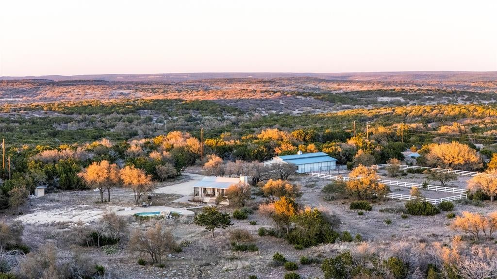 76.9 acre hunting ranch located within the exclusive 2,000 acre Dominion High Fence Ranch, formerly part of the historic YO Ranch. This property offers a private retreat in the Texas Hill Country, perfect for passionate hunters. The ranch is abundant with game species such as Black Buck Antelope, Aoudad, Axis Deer, Sika, Fallow Deer, Red Deer, Elk, Native Whitetail Deer, Turkey, Hogs, and Varmints, offering ample trophy opportunities. The new owner can harvest up to 5 trophy exotics per year alongside native whitetail deer and turkey. The sale includes deer feeders and stands, making it easy to transition, with local services available to refill feeders. A pond provides a natural water source for wildlife. The property is managed by an HOA, which covers maintenance and game management. Utilities include electricity, a well, septic system, and high-speed internet, offering modern comforts in a serene setting. The 770 sq. ft. main house features 1 bedroom, 1 bathroom, central heat and air, and a fully equipped kitchen with modern appliances. The front porch offers picturesque views of the ranch, and an in-ground pool is perfect for relaxation and entertainment. The home is fully furnished, so you can move in immediately. For equestrian enthusiasts, the 2,160 sq. ft. horse barn includes four 12x12 ft. stalls, 20x12 exterior runs, a corral, three 14x12 ft. bunk rooms with full baths, and a large drive-through area. The barn comes fully furnished and includes everything seen in the photos. A covered skinning area is available for processing your harvests on site. This unique property combines luxury, history, and natural beauty, offering an extraordinary opportunity to own a piece of Texas Hill Country.