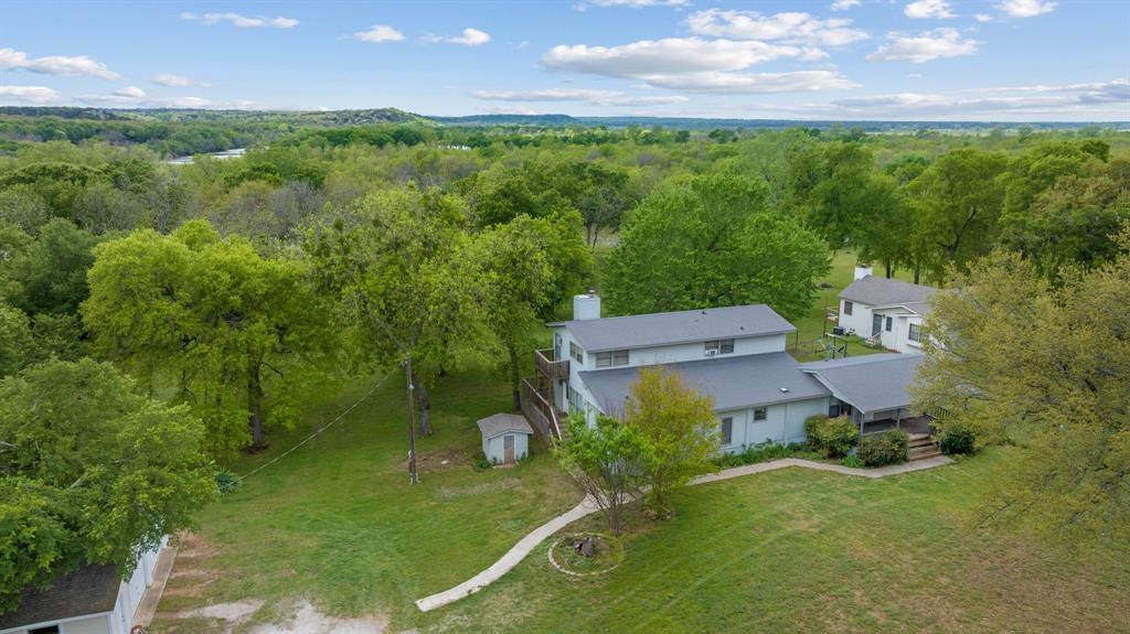 Brazos Riverfront Retreat with Endless Potential! Nestled on a quiet waterfront slough with direct access to the main body of the Brazos River, this 2-acre riverfront gem offers a peaceful, park-like setting perfect for relaxation and recreation. Whether you're into boating, fishing, or simply soaking in the natural beauty, this property delivers it all—and even lets you boat into Lake Granbury for lakeside dining or to catch the unforgettable July 4th fireworks show. This spacious 5-bedroom, 4-bath home is ideal as a family getaway or a lucrative Airbnb. With multiple living areas, a wood-burning fireplace, and a generous kitchen, there's plenty of room for everyone. The lush, tree-covered lot creates a serene, shaded retreat, while expansive decks wrap around the front, back, and sides, offering breathtaking views in every direction. Located just south of Weatherford 15 minutes and north of Granbury the location is perfect for all. Access to the public boat ramp is just down the street and multiple small restuarants are available just minutes away. While the home does need some TLC, the possibilities are endless. Don’t miss this rare opportunity to create your dream riverfront escape on one of the most scenic stretches of the Brazos!
