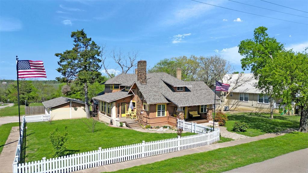 Charming 1918 Craftsman Corner Lot Home with Tons of Character Step back in time with this beautifully preserved 5-bedroom, 3-bath home, sitting proudly on a spacious .578-acre corner lot surrounded by a classic white picket fence. Bursting with character from the early 1900s, this home features original shiplap walls, a refinished clawfoot tub, and two cedar-lined closets. Inside: you’ll find spacious living areas full of vintage charm and thoughtful updates. The detached 2-car garage with a workshop is perfect for hobbyists or extra storage, and there’s even separate storage with a finished room that can be used as a playroom, outdoor office, or guest space. Outside: Enjoy peaceful mornings or evenings on the cozy porch overlooking the backyard. There’s ample space on the side of the garage for a trailer or lake toys, making this a perfect setup for those who love the outdoors. 15 minutes from the new Bois D'Arc Lake. This lovingly maintained home offers a rare blend of history, character, and functionality—all within a beautifully established neighborhood. The furnishings in this home can be purchased. Looking for a place to turn into a Venue? Here is your opportunity, a corner lot with plenty of space. Call Agent to Discuss.