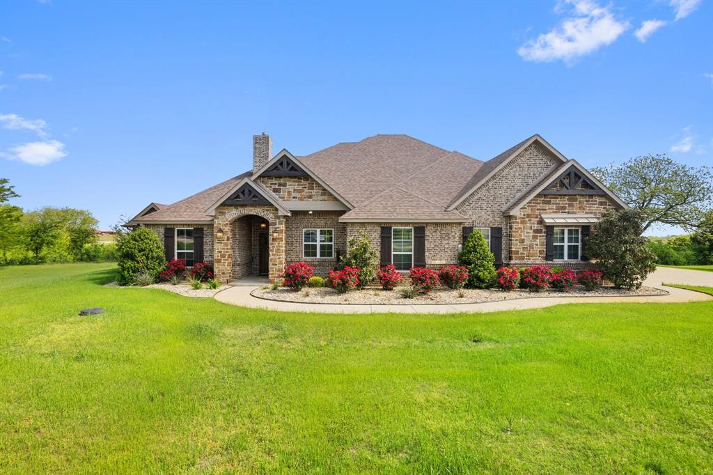 Welcome home! Located in Rock Creek Resort, this one story house sits on a .570 acre, cul-de-sac lot, backing up to private acreage. This home offers so much! Featuring a large open floor plan, 3 bedrooms, 3 full bathrooms, 2 half bathrooms, an office, gameroom, movie room and an amazing backyard living experience. All bedrooms are ensuites. A full bar in the game space with full refrigerator, wine refrigerator, ice machine and microwave. Incredible screened in outdoor living with full kitchen. Open outdoor living with built-in fire pit and hot tub. Rock Creek resort amenities include: Gated 24 hour security, 18 hole Jack Nicklaus design golf course, fitness center, restaurant & pro-shop, tennis-pickleball-basketball court, marina, ship store and Cross Timbers hiking trail. Schedule a home tour today!