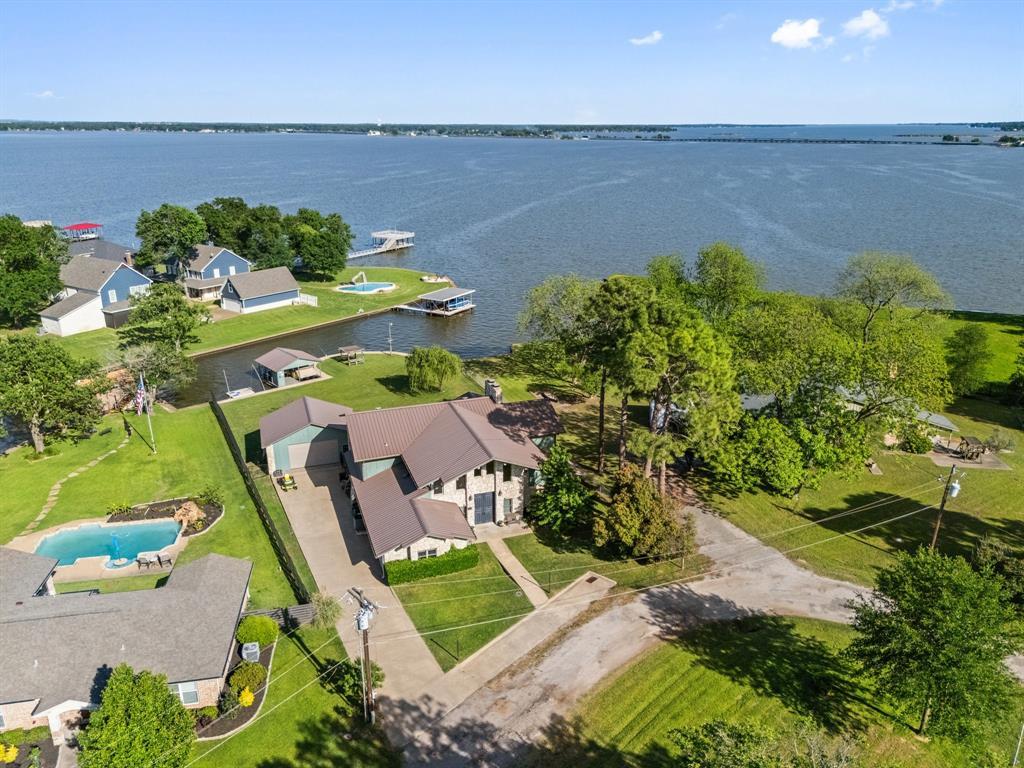 Beautiful 5-Bedroom Home with Boat Dock on Main Water in Kemp, Texas. 1035 Holiday Circle, this spacious 5-bedroom, 4-bathroom home offers 5,110 sq. ft. of living space and the perfect blend of comfort and luxury. Built in 1985, the home features two cozy fireplaces, high ceilings, and an open-concept design that invites natural light and warm gatherings. The expansive living areas provide a welcoming atmosphere for family time and entertaining. The chef-inspired kitchen flows into a large dining area, ideal for hosting family meals. The master suite is a peaceful retreat with a spacious walk-in closet and a luxurious en-suite bathroom featuring dual vanities, a soaking tub, and a separate shower. Four additional generously-sized bedrooms offer ample space for family, guests, or a home office. A highlight of this property is its prime waterfront location on the main water, offering direct access to the water with a boat dock that includes a lift. Perfect for boating enthusiasts, the dock is situated in a protected cove, shielding you from wind and waves while still providing easy access to the open water. Outside, the large yard provides plenty of room for outdoor activities, relaxation, and potential future enhancements. The attached two-car garage adds convenience and storage, and with four full bathrooms, this home easily accommodates large families and guests. The peaceful neighborhood offers quick access to local schools, parks, and major highways, combining tranquility with convenience. This retreat is the perfect place to enjoy lakeside living with the security of a sheltered dock, a huge yard, and a spacious, comfortable home.