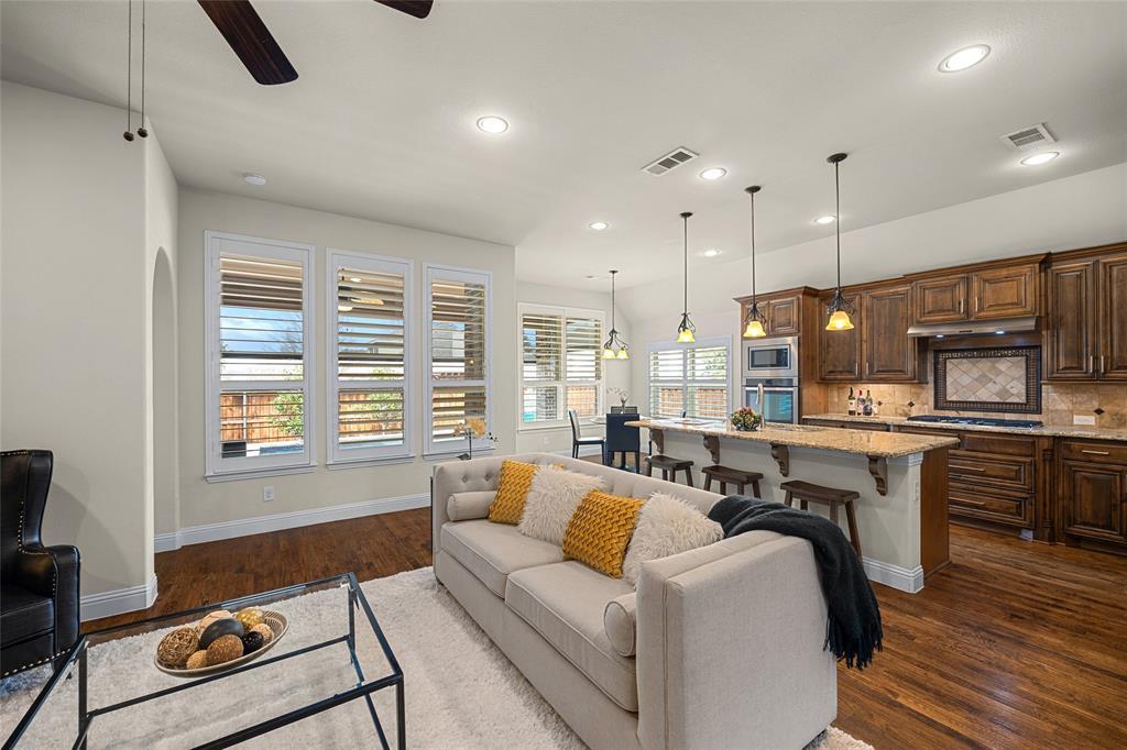 Welcome to 864 Gaited Trail, where resort-style living meets everyday comfort in one of West Frisco’s most desirable communities. This beautifully maintained 3-bedroom home with a dedicated office, upstairs game room, and private pool is the rare combination you’ve been waiting for. The open-concept floorplan is anchored by a warm living area with real hardwood floors and a cozy fireplace, flowing seamlessly into a chef-inspired kitchen featuring knotty alder cabinetry, a gas cooktop, double ovens, granite counters, walk-in pantry, and an oversized island perfect for entertaining. All bedrooms are conveniently located on the main level, including a spacious primary suite with dual sinks, a garden tub, separate shower, and a generous walk-in closet. Upstairs, enjoy movie nights or game days in the expansive bonus room with a half bath. Step outside to your backyard retreat—complete with a sparkling pool, extended covered patio, and newly installed remote-controlled privacy screens. Additional upgrades include newer carpet, plantation shutters, poly-coated garage flooring, and wood stairs. Living in Phillips Creek Ranch means access to top-tier amenities: two resort-style pool complexes, splash pad, fitness center, scenic trails, and acres of green space—all in a prime location within Frisco ISD. Don’t miss this rare opportunity to live in luxury for under $770K!