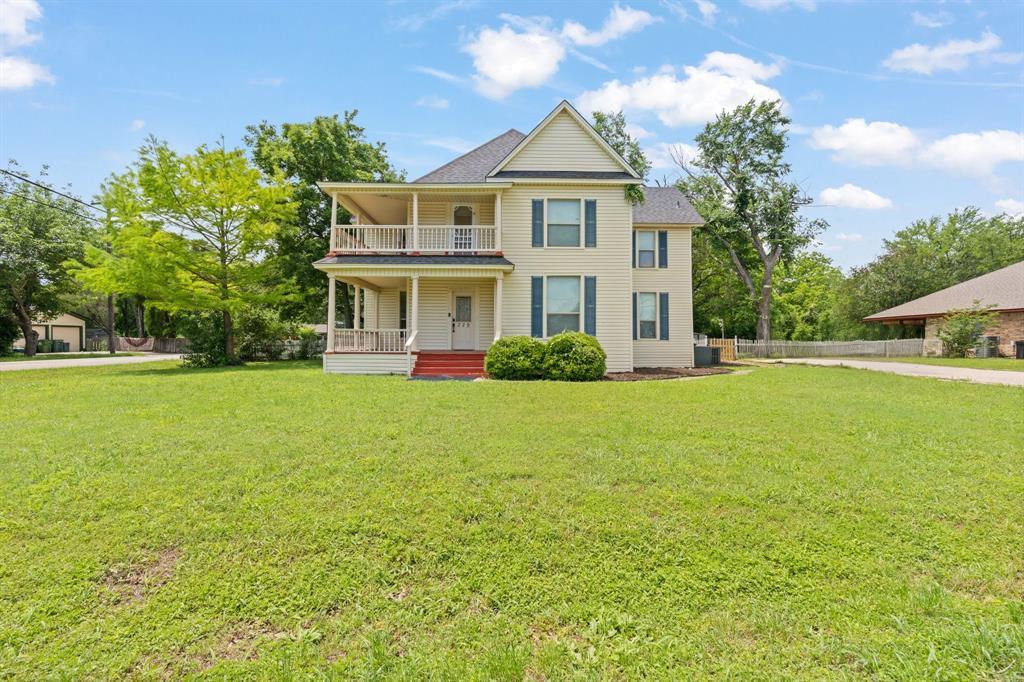 Welcome to this charming two-story Victorian style home located on a spacious corner lot. Featuring three bedrooms and three full bathrooms, there is ample space for the entire family. Upon entering, you’ll discover a newly renovated living space with a new subfloor, fresh paint, and updated floors that lead into the dining area. The kitchen is a chef's delight, with stainless steel appliances, an island, and a convenient pot filler faucet, ensuring easy meal preparation. Updates include a new roof installed in July 2023, a replacement of the downstairs HVAC unit, fresh paint throughout multiple spaces, and the water heater has been upgraded to a tankless model. Downstairs, you'll find a versatile flex room, perfect for a home office. All bedrooms are located upstairs, providing privacy and convenience. Enjoy your morning cup of coffee outside on the first or second floor covered porch. The back of the home features a covered patio, ideal for unwinding during quiet evenings. A storage shed offers extra space for your belongings, and ample parking ensures convenience for residents and guests. Don’t miss the opportunity to make this charming house your new home!