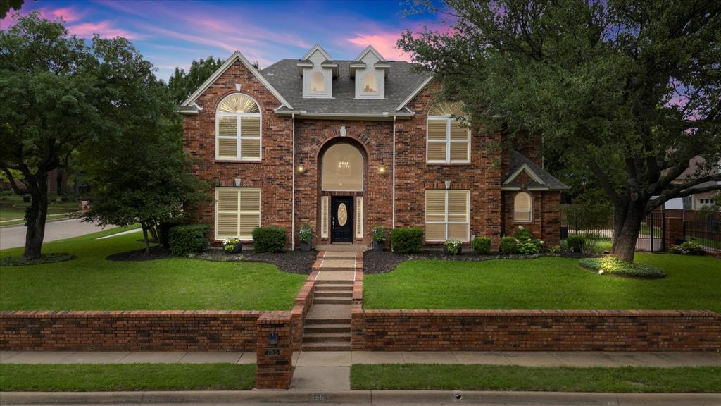 Discover this exceptional Traditional pool home nestled on a peaceful corner lot in desirable Keller. This residence is impeccably maintained and exudes model home elegance and offers extensive updates including Roof and Gutters-2023, HVAC-2024, painted exterior-2024 and more! Step inside through an elegant foyer featuring sweeping hardwood floors and soaring 20 foot ceilings, setting the tone for the rest of this breathtaking home. Just off the entry, a formal dining room with built-in cabinets provides a refined space for entertaining. French doors open into a dedicated home office, ideal for remote work or a quiet retreat. The light filled living room is anchored by a cozy gas fireplace with a dramatic floor-to-ceiling stone surround, flanked by arched windows that flood the space with natural light. Utilize your culinary skills in the gourmet kitchen equipped with Quartz counter-tops, soft-close cabinets and drawers, upper and under-mount lighting, double ovens, farm sink, appliance cabinet with outlets, and expansive island, perfect for casual dining. The main floor primary suite is a private sanctuary with a luxurious ensuite bath with dual sinks with Quartz counter-tops, a relaxing free-standing tub, frameless glass shower with dual showerheads, and a generous WIC. A wrought iron staircase leads upstairs to a versatile bonus room—ideal as a media room, game room, or second living area. Smart two-way split layout offers privacy for secondary bedrooms, each with access to beautifully updated baths. Step outside to your own private backyard oasis. A sparkling pool is the centerpiece surrounded by three separate pergolas including a fully-equipped outdoor kitchen with a built-in Bull grill and prep sink. There’s even green space for kids and pets to enjoy. Additional features include a three-car garage, an electric gate, and ample driveway parking. This home is located close to the Bear Creek walking and biking trails that start inside the neighborhood!