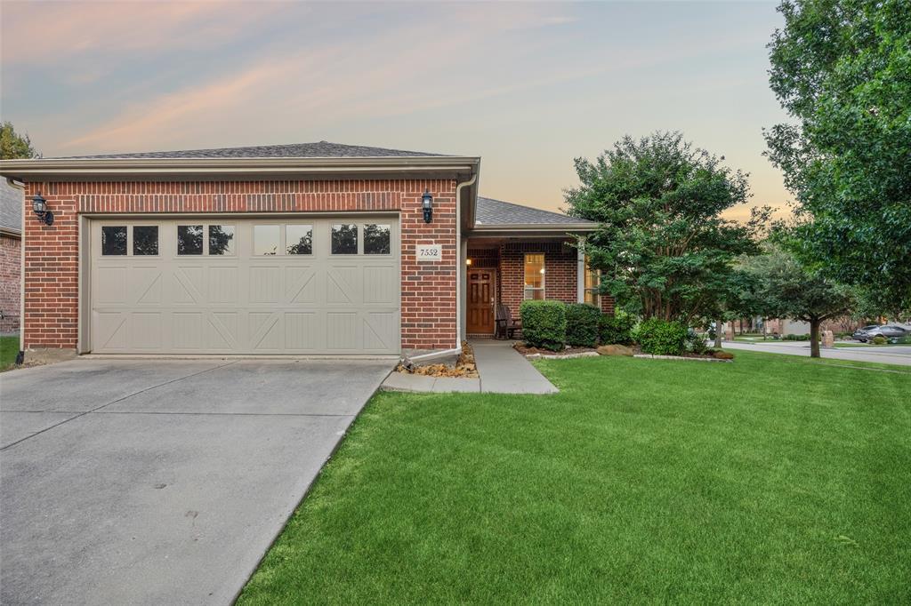 Charming home on a corner lot in the highly desirable Frisco Lakes Active Adult Community! Home to an 18-hole championship golf course & incredible amenities including multiple swimming pools, fitness centers, social clubs & recreational activities! This home sweet home boasts a lovely front porch perfect for visiting with neighbors or guests plus a spacious backyard with lush landscape and a dreamy covered back patio. Through a wide entry the warmth of the home greets you with a large kitchen featuring stainless steel appliances, abundance of storage in beautiful cabinetry, plus a dining area nestled in an array of windows. The breakfast bar ideally serves toward the living room, making it perfect for entertaining family and friends! The spacious living room features a large entertainment niche and is bathed in natural light as it is surrounded by large windows, including glass slider doors to the backyard! The serene and private master bedroom is spacious with a wall of windows, a master bath with a large walk-in shower and a walk-in closet. Additional, roomy secondary bedroom and full bath. This amenity-rich community is brimming with activities year round, surrounded by lush landscape and conveniently located near great shopping, dining and entertainment!