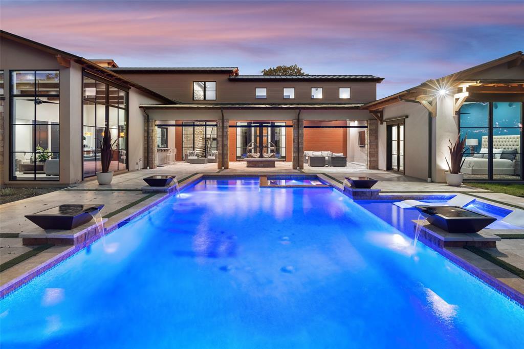 Contemporary 8,079sqft, 4BR, 4.1 BA on 1 acre for lease in Bartonville. Completed in 2021, the 2-story sits on a magnificent 72-acre equestrian estate filled w.mature trees, ponds and lush pastures. Walls of steel-framed windows provide breathtaking views fm every room. Entry door opens to a soaring hallway flanked by glass walls, connecting family areas to owner's retreat. A floating staricase leads to 2 en suite BR's and a theater room up. Chef's kitchen 60-inch, 6-burner Wolf range with grill, griddle and convection oven. A 12x10 walk in pantry can double as a butler's pantry with granite counters, custom drawers, farm sink and built in microwave. A custom 488-bottle glass wine wall separates living & dining areas. Owners retreat has walls of glass and en-suite spa bath. Office is also in this wing. Resort-style pool w.baja shelf, spa and water features accessible directly from owner's suite or outdoor living center.