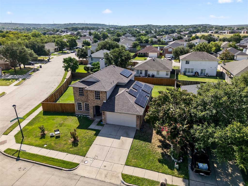 This beautiful home four bedroom, 2 bathroom and a half with a studio is settle on a corner with brand new fence, roof and solar panels. It has a large yard where you can spend your summer grilling, playing games and enjoying nights in a calm subdivision that has a fun play area for neighborhood enjoyment. It is near Joe Pool for your lake enjoyment, home is centrally located many cities and all the amenities that such offer. PROPERTY QUALIFIES FOR LOW INTEREST RATE.