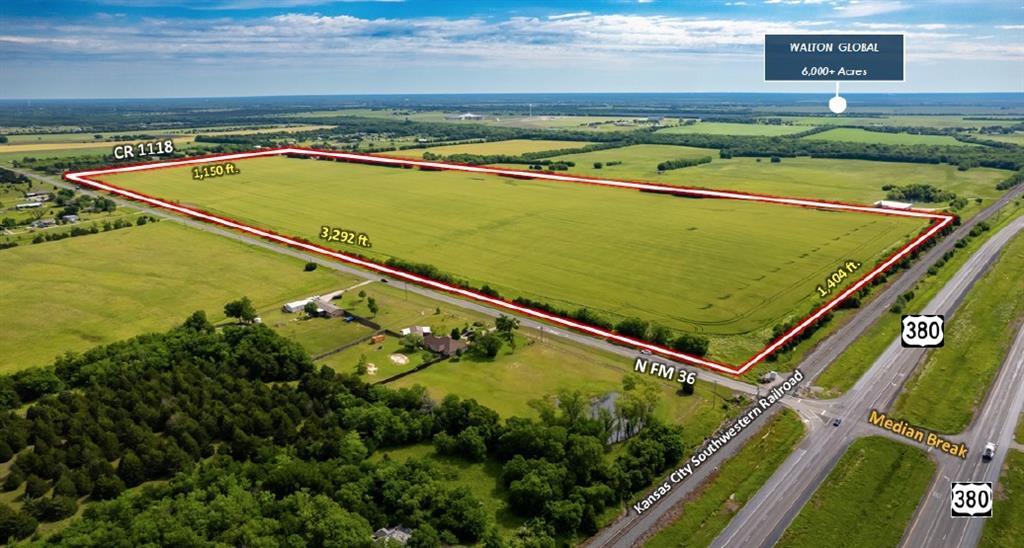 Bryan Haggard Land Group (BHLG) proudly presents 380 CORNERS a ±103.11-acre premier land investment opportunity strategically positioned at the northwest corner of Highway 380 and N FM 36 in Greenville, Texas. This unzoned tract lies outside city limits, offering unparalleled flexibility under Hunt County's less restrictive development standards. With direct frontage on the expanding Highway 380 corridor and a 12i n. water line provided by Caddo SUD, the property is ideally suited for commercial, residential, or mixed-use development. Located just 22 miles east of US 75 and adjacent to the planned Highway 380 bypass, the site offers seamless connectivity to the thriving economic hubs of McKinney, Frisco, Allen, and Sherman. The region boasts a robust employment landscape, featuring major employers such as L3Harris Technologies and Raytheon, and benefits from the explosive growth of neighboring Princeton, the fastest-growing city in the United States as well as Anna (the 5 fastest in the US) and Melissa (the 11 fastest in the US).