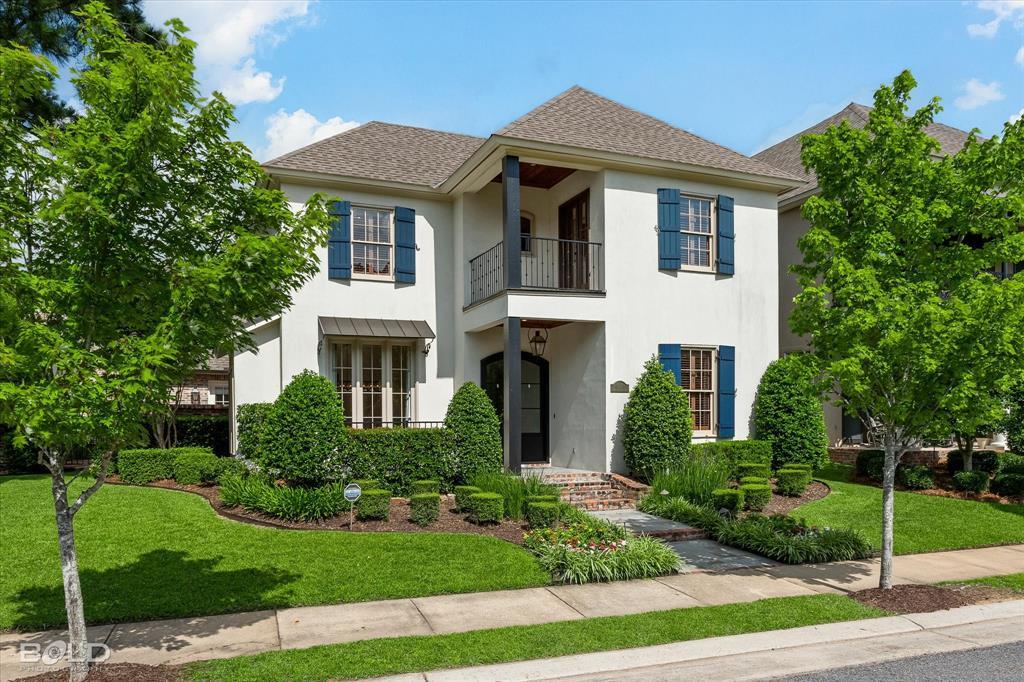 Beautiful Acadian-Style Stucco and Brick Home in Provenance — Designed for Entertaining — Set on an oversized lot, this stunning home blends luxury, comfort, and thoughtful design. From the moment you step inside, you'll notice rich wood floors, warm brick accents, wood beams, and custom lighting that add charm and character throughout. The open floor plan flows seamlessly from the living area into a gourmet kitchen, accessed through a striking brick-framed entryway. The kitchen features a gas cooktop, built-in microwave, double ovens, two pantries, and an oversized island—ideal for both daily living and entertaining. A wet bar connects the kitchen to the formal dining room, creating a natural setup for hosting. Two distinct outdoor living areas extend the home's entertaining potential: a private courtyard perfect for quiet mornings, and a covered patio with an outdoor kitchen and fireplace for gathering with friends and family. The remote primary suite offers a spacious bath and a generous walk-in closet. An additional bedroom is located downstairs, with two more upstairs along with a bonus room. Each bedroom has direct access to a bathroom, providing privacy and convenience for everyone. A generous utility room adds everyday function, and a three-car rear-entry garage provides ample parking and storage. This home is breathtaking inside and out—come and experience all it has to offer.