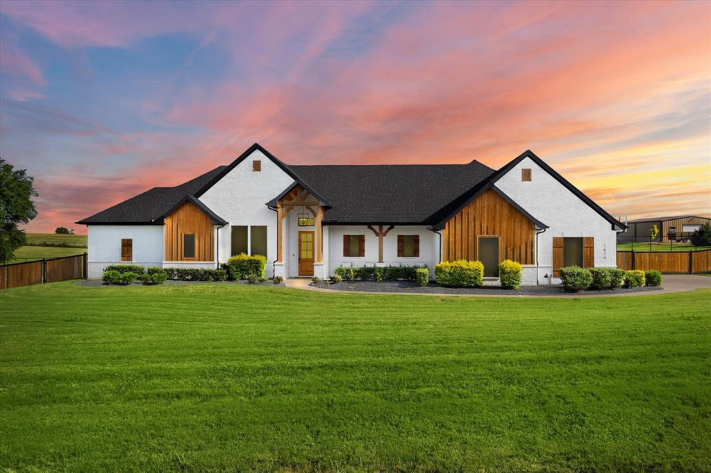 Welcome to 1074 Pioneer Crossing in beautiful Weatherford, Texas! This charming single-family residence offers an inviting blend of modern elegance and cozy comfort. As you enter, you'll be greeted by a spacious living area with stunning custom beams and accent walls that create a warm and inviting atmosphere. The heart of the home features a gourmet kitchen, complete with a quartz waterfall island, double ovens, and custom cabinetry—perfect for culinary enthusiasts. This home boasts four generously sized bedrooms and two and a half luxurious bathrooms, offering ample space for relaxation. The master suite is a true retreat, with its thoughtfully designed en-suite bathroom. Step outside to your private oasis, where a built-in grill and beautiful fireplace create an ideal setting for outdoor gatherings all times of the year. The property is uniquely positioned, backing up to the Parker County Arena, an expansive equestrian center that adds both privacy and scenic views. Embrace the perfect blend of country charm and modern amenities in this exquisite Weatherford home.