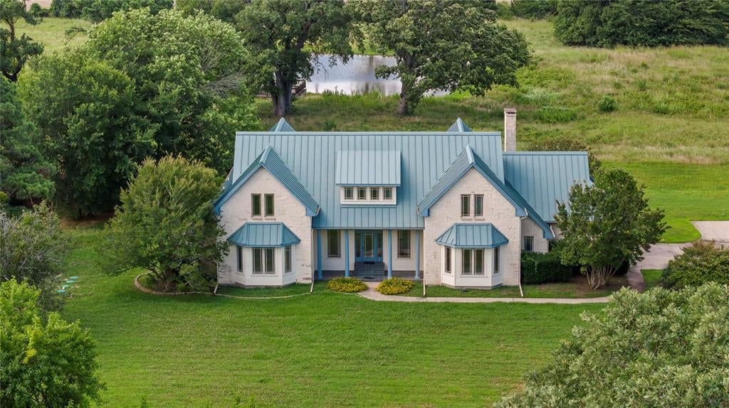 This exquisite two-story stone residence blends timeless elegance with modern comfort. Boasting 5 spacious bedrooms and 4 bathrooms, this home features upscale finishes and thoughtful design throughout. A detached 3-car garage with a concrete drive and additional 2 car garage space attached to the home provides ample vehicle space and storage convenience, while the 15 Acres of landscaped grounds create an inviting ranch setting. This property has covered patio with tile floor over looking the private pond offering a stunning view, complete with a deck perfect for new owner. This well-appointed home is filled with an abundance of windows that bathe the interior in natural light and offer picturesque views of the pond. Thoughtful built-ins and custom details are found throughout, including fireplace that add warmth and ambiance to the den. The kitchen showcases natural wood cabinetry, tile countertops, and a cozy eat-in breakfast area framed by bay windows. Upstairs, you'll find three spacious bedrooms, two full baths, along with a versatile bonus room featuring extensive built-in storage and an office area perfect for working from home. A rare combination of luxury, space, and natural beauty—ready to welcome you home.