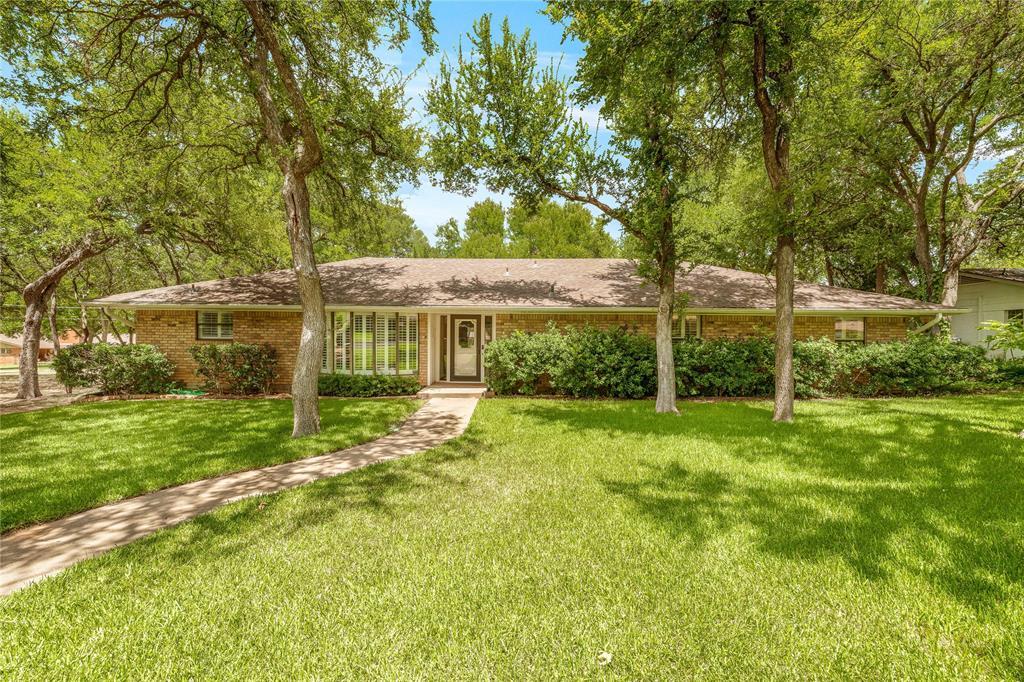 PRICE REDUCTION! Impressive 3BR, 2.5BA, 2 car garage OPEN CONCEPT brick home located in one of the nicest neighborhoods in Graham! Exceptional layout featuring a wide foyer leading into the main living area which boasts engineered hardwood flooring, wood-burning fireplace, entire wall of built-in display shelves and cabinets, lighted ceiling fan and recessed lighting. Spacious and well-appointed kitchen with ample cabinet and counterspace, double sink, range, built-in microwave, dishwasher and breakfast bar. Dining area with a bay window overlooking the manicured front yard. SPRINKLER SYSTEM in front and back yard. OVERSIZED Primary Bedroom offers carpet, two walk-in closets, ensuite bath with a step-in corner shower, vanity with sink, linen cabinet and toilet. The two secondary bedrooms share a Jack-n-Jill bathroom with a jacuzzi tub-shower combo, vanity with sink and toilet. One of the secondary bedrooms has a lovely wall of built-in display shelves and cabinets. A BONUS room between the den and patio can be used as a home office, gym, game room or play room as it has built-in cabinets and a large picture window. The separate utility room has full-size washer & dryer connections, room for a freezer, built-in cabinets, a sink and a toilet. Plantation shutters throughout. Plenty of storage space throughout. Total Electric. Central Heat and Air. NEW ROOF in 2023. NEW INTERIOR PAINT in 2023. Private and charming backyard with a huge concrete patio, storage building with electricity and built-in doggie door, plus a wood-privacy fence. A small metal storage building is located near the driveway and offers plenty of space for mowers and garden tools. Garage is accessed from the alley. Beautiful shade trees! Terrific location within a few blocks of Graham Regional Medical Center, The Wellness Center, great restaurants, schools and shopping. Just a short drive to both Lake Graham and Possum Kingdom Lake!