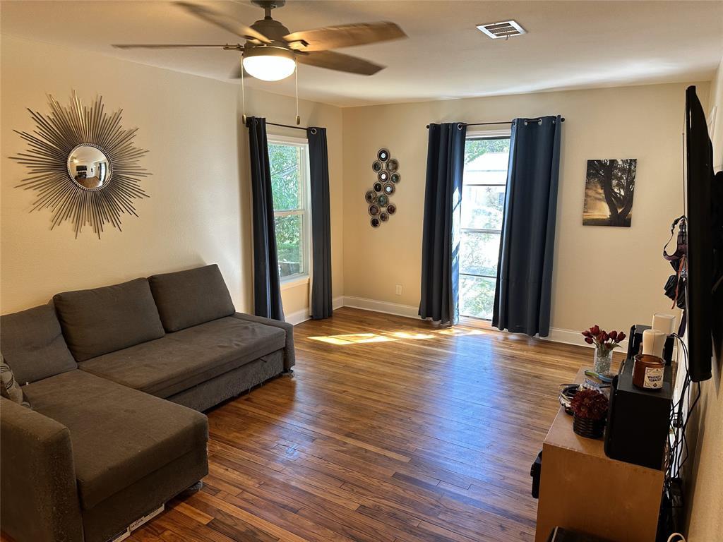 Remodeled, Four Bedroom, Home on Corner Lot, Beautiful Hardwood Floors in the Living Rm, Dining Rm, Hallway, and Three Bedrooms. Remodeled Kitchen with Stainless Appliances, and Vinyl Plank Flooring. Both Bathrooms Have Been Remodeled Also. An Addition to the Home includes a Fourth Bedroom Area that is Perfect for an In-Law Suite, or for a High School, Teenager. The Addition Included a Large Bedroom with a Kitchenette, A Separate Living Area, (which is currently being used as a Shop & Storage Area), And A Bathroom with Dual Sinks. The Addition also includes a Home Office Area with Built-in Bookshelves, and a Nice-Sized Utility Room that has Extra Space for A Refrigerator or Freezer. Driveway in the Front of the Home that Allows Two Cars to be Parked off the Street and a Carport in the Back Yard, which is Conveniently Accessed from the Side Street. Three Pecan Trees and One Peach in Yard. Home is Close to Charming Downtown Irving Area with Lots of Restaurants & Shopping.