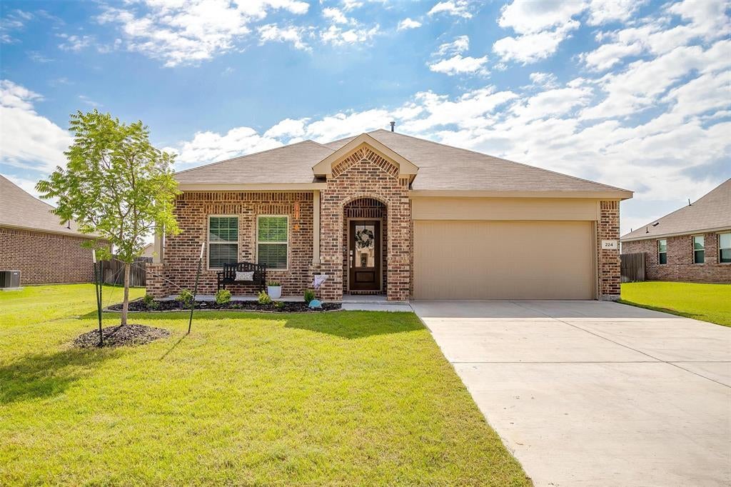 Sellers offering $2000 concessions and washer and dryer included in the sale! This 4 bedroom 2 bath, 1838 sf home has been beautifully maintained and ready for new owners. The open concept floorplan provides plenty of space for family and friends to gather. The large kitchen island with quartz countertops is the heart of the home. The kitchen also boasts a gas cooktop and oven, stainless steel appliances as well as a large pantry. Luxury vinyl plank flooring runs throughout the home with plush carpet in the bedrooms. The primary bedroom is spacious and private tucked away in the back of the home. The luxurious primary bathroom has an oversized shower and stunning quartz countertops. The established yard offers deer resistant landscape, staked trees and a sprinkler system in both the front and backyard. An added bonus is you can view the Eagle Mountain Lake fireworks show from your own backyard on NYE and July 4th!