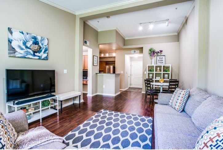 Location and convenience in the heart of Las Colinas Urban Center! Amazing opportunity to live in this luxury gated high-rise one-bedroom condo. 24hr concierge, onsite management and outstanding amenities, rooftop pool & spa, business center, resident lounge, fully equipped fitness center, club room coffee lounge, an executive conference room. Features include a large walk-in closet, soaring ceilings, spacious open floor plan, built-in study, granite countertops, new water heater, full size washer and dryer area with access to hallway. Beautiful engineered floors. This master planned community offers easy access to Lake Carolyn, The Mandalay Canal, and nearby entertainment, dining and shopping options, including the Toyota Music Factory and Water Street . Easy commute to DFW International Airport, Love Field Airport, and downtown Dallas. Making this ideal for professional and frequent travelers. The area is walkable, with nearby parks, lakeside eateries, and entertainment venues like the Irving Convention Center and Mandalay Canal Walk, which offers gandola rides and scenic trails. Parking#333. $120-month utilities.