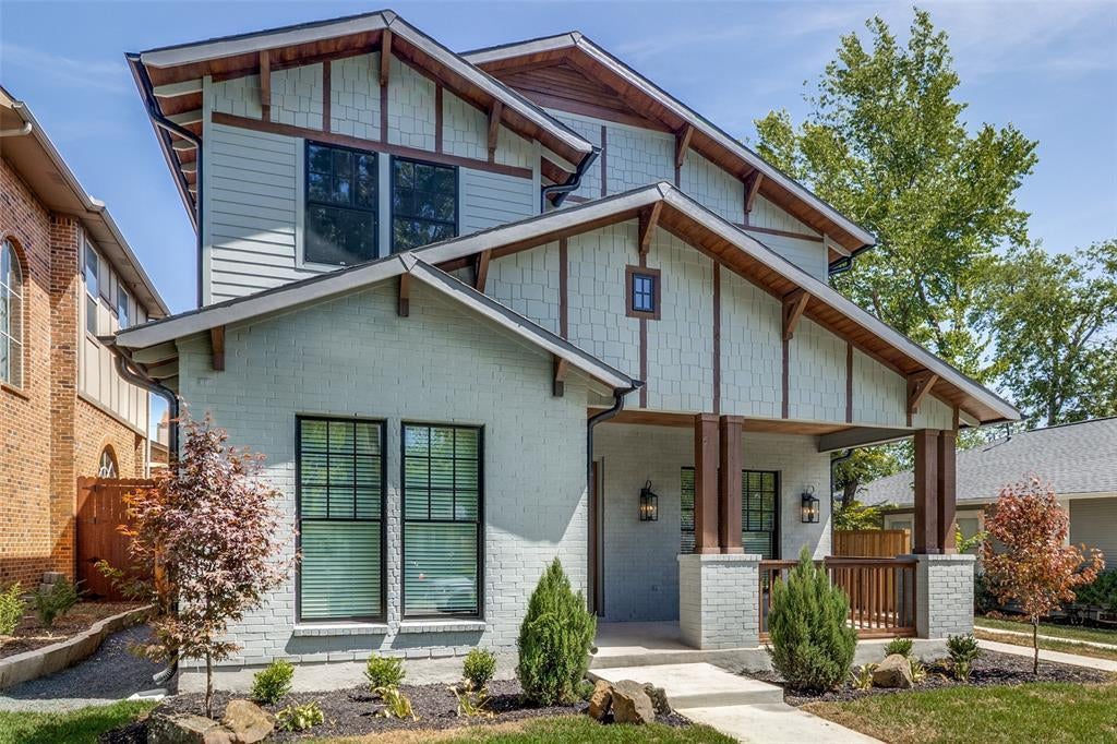 New construction just completed in Belmont subdivision Historic Conservation District and walking distance to Tietze Park. Spacious covered front porch welcomes you into this craftsman style home in the heart of Dallas featuring an open floorplan that is perfect for entertaining yet cozy enough for family night. Kitchen area open to Family room and fireplace with 16' double sliding doors leading out to a large, covered terrace, perfect for outdoor living. Office and guest Bedroom with ensuite bathroom downstairs. Large primary bedroom upstairs with enormous closet, cedar accent wall and tons of storage with walk in laundry room nearby. Two additional bedrooms upstairs share a large Jack and Jill bathroom. The home also has vaulted ceilings, craftsman style decorative details and lots of interesting ceiling trim including exposed beams. Downstairs a mud room off the kitchen leads out to an oversized two car garage. Home features tons of upgrades including tankless water heaters, Pella windows, spray foam insulation, designer tile and premium quartzite countertops.