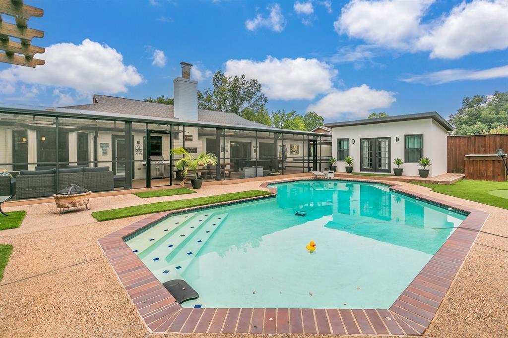 Welcome to this beautifully updated single-story home in North Richland Hills, located in a top-rated school district and featuring a backyard that feels like your own private resort. With three bedrooms and two full baths, the home has been thoughtfully renovated over the years. The living room is warm and inviting with high ceilings, a cozy fireplace, and clear views of the backyard. The kitchen features granite counters and an adjacent dining area that looks out over the yard, creating a bright, relaxed space for meals. Step outside and it’s all about the experience—an in-ground pool, a huge screened-in covered patio with a hot tub, turfed yard, a putting green, and a pergola that’s perfect for unwinding or chatting with friends. There’s even a finished pool house with its own mini-split AC, great for hobbies, a home gym, or creative space. Other highlights include wood-look plank flooring throughout (no carpet), walk-in showers, ceiling fans, a newer roof, stained privacy fence, and four-sided painted brick—all on nearly a quarter acre. Just down the street from Northfield Park and close to grocery and shopping.