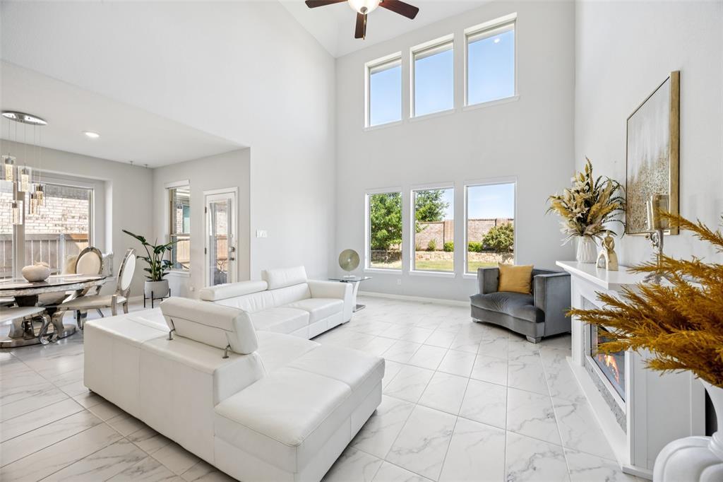 Mortgage savings may be available for buyers of this listing. Exceptionally maintained and filled with natural light, this stunning 4-bedroom, 2.5-bath contemporary brick home in Haslet offers style, comfort, and function in every detail—plus a waterfront view! Enter to soaring high ceilings, white tile flooring, and a modern open-concept layout that welcomes you with warmth and elegance. The spacious living room sits at the center of the home, featuring a cozy fireplace and a wall of windows. A beautiful open staircase adds architectural interest and charm. The extended eat-in kitchen is a true showstopper, boasting a huge island with seating, designer cabinets, eye-catching backsplash, quartz countertops, built-in appliances, walk-in pantry, and smart light switches for modern convenience. A spacious dining room and bright breakfast nook offer ample space for meals and entertaining. The downstairs primary suite is a tranquil retreat with a seating area and spa-like ensuite bath, complete with dual sinks, large soaking tub, separate shower, and walk-in closet. Upstairs, a large game room and three roomy secondary bedrooms with a full bath provide flexible space for guests. Enjoy outdoor living at its finest with a generous covered patio and beautifully landscaped front and back yards. Located in a sought-after area close to parks, shopping, and dining, this home offers the best of both comfort and convenience. Don’t miss your chance to own this move-in-ready gem with luxury touches throughout! 3D tour is available online.
