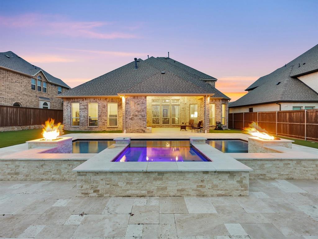Welcome to this stunning home in the sought-after La Frontera community, where over 4,000 square feet of well-designed space offers the perfect balance of comfort and sophistication. The open-concept kitchen is a showstopper, featuring modern finishes, a center island, and seamless flow into the breakfast nook and cozy living room with a fireplace. The formal dining room is perfect for hosting, and the private office includes custom built-ins for added function. The main-floor primary suite is a peaceful retreat, complete with an ensuite bath: dual sinks, a soaking tub, separate shower, and walk-in closet. Upstairs, you'll find a spacious game room and generously sized bedrooms, offering flexible space for every need. The utility room downstairs adds convenience with built-in cabinetry and a sink. Step outside to your personal backyard oasis featuring an in-ground pool and spa with water features, a covered patio, and beautifully landscaped yard, perfect for summer days or relaxing evenings. La Frontera offers scenic walking trails, picnic areas, a splash pad, and quick access to Eagle Mountain Lake, marinas, parks, and more. All this, just minutes from highways, dining, shopping, and entertainment. This home is the total package, freshly available and ready for its next chapter. With its prime location, stunning features, and perfect blend of luxury and practicality, this home truly has it all.