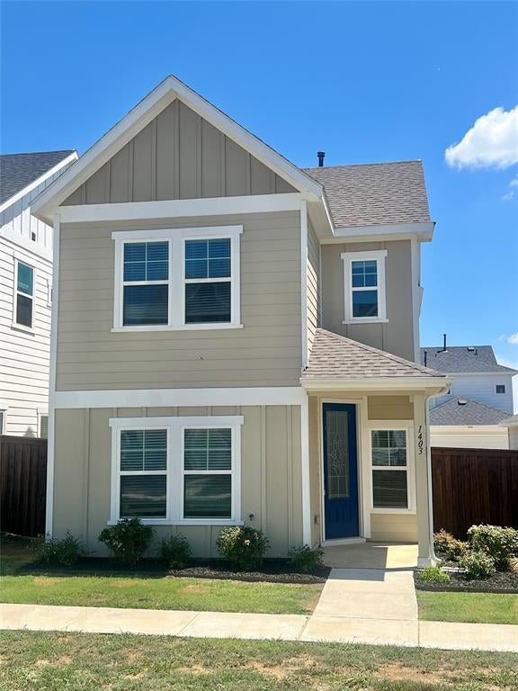Welcome to this beautifully maintained 2-bedroom, 2.5-bath Craftsman-style home located just minutes from downtown Gainesville and I-35, and right across the street from the NCTC campus. This thoughtfully designed home features an open-concept floorplan with a dedicated study on the main level—perfect for remote work or a quiet reading nook. The spacious kitchen is equipped with stainless steel appliances, granite countertops, a large pantry, and modern cabinetry, making it ideal for both everyday living and entertaining. Upstairs has a large primary bedroom with a walk-in closet, separate shower and garden tub. The linen closet in the hallway gives you extra storage space, too. The second bedroom upstairs also has a private bath with an oversized shower. The upstairs utility room is conveniently located near a generous linen closet for easy access. Enjoy the privacy of your fenced backyard, while the HOA takes care of front yard maintenance for added convenience. Additional features include window blinds throughout and Craftsman-inspired architectural details that add timeless character. Don’t miss the opportunity to live in this desirable location with low-maintenance living and modern comforts—schedule your showing today!