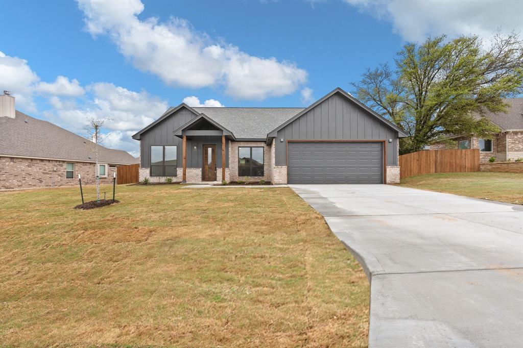 Welcome to this beautiful new construction home located in the highly desirable neighborhood of Meander Estates, offering convenient access to shopping, amenities and all Granbury has to offer. Step inside to discover open concept living spaces bathed in natural light, creating a bright and airy atmosphere. The chef's dream kitchen is equipped with energy-efficient appliances, custom cabinetry, a large center island with extra storage, granite counters, and a spacious walk-in pantry. The bright and open living area features a cozy electric fireplace, perfect for relaxation and family gatherings. The split bedroom layout ensures privacy, with the primary suite tucked away for optimal relaxation. The ensuite bathroom offers a luxurious feel with his & hers vanities, a large soaking tub and beautiful separate shower and walk-in closet. This beauty offers neutral paint, carpeting in bedrooms and natural wood look tile flooring in main living spaces. This home reflects pride in construction and it's move-in-ready. Outside features a 2 car front facing garage, a beautifully landscaped yard with sprinkler system, fenced backyard and covered patio. A great place to enjoy your morning coffee or a glass of wine after sunset. This property is on the north side of Granbury and approximately 25 minutes to Fort Worth. Don't wait to make this property your own. Welcome home!