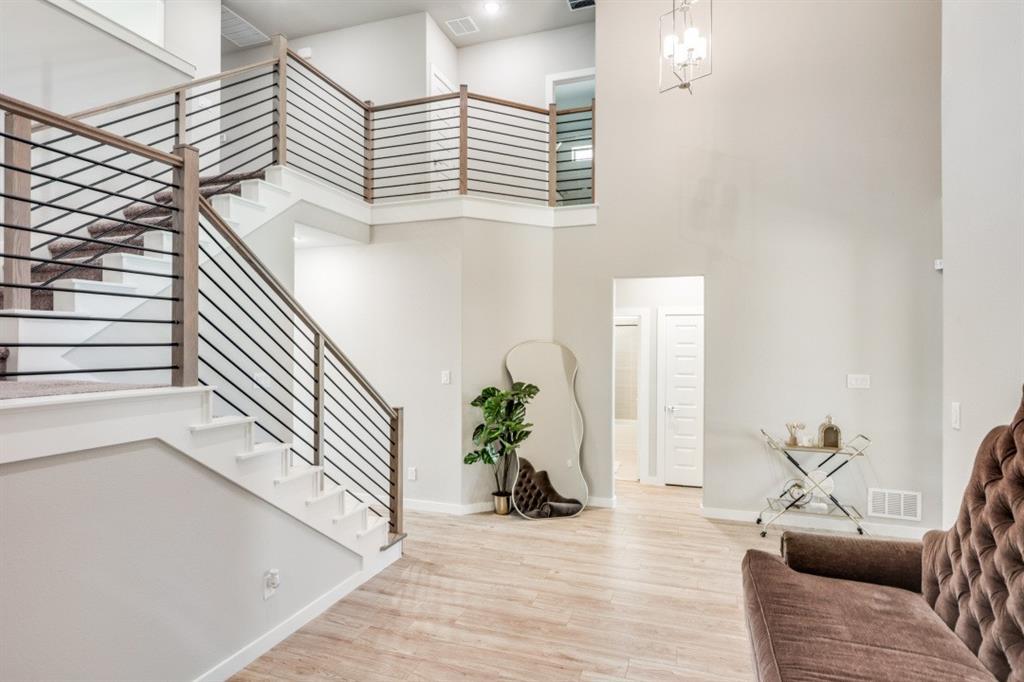 This Stunning 2 year old modern home on a 60' wide lot, is spacious and modern! Motivated Sellers have taken immaculate care! Better than new with security, window coverings, landscaping etc.. This Pet Free home shows like a model! Hard to find FIVE bedrooms, study and 3 living areas! Popular NS orientation ensures morning and evening shade. There are 4 full bathrooms plus a powder room! The L shaped family room has an electric fireplace, a wall of windows and 2 story sloped ceiling. The Dining room is separate and views the covered patio. Channel your inner chef in the gourmet kitchen with large breakfast or serving bar, gas cooktop and walkin pantry. Primary bedroom is downstairs featuring large bay windows, ensuite bath with oversized shower, dual vanities and spacious walkin closet. Utility room features a counter and sink area plus storage. Private study is off of the THREE car garage with french doors. A guest bedroom is downstairs with bath. Upstairs are three large bedrooms, two full bathrooms, large gameroom plus a separate media room. This plan truly offers a private space for everyone! Home has a sprinkler system and the backyard is fenced with a large, covered patio area perfect for outdoor entertaining! Shows like a model home! Come see this nicely planned neighborhood with pool, playground, trails, local schools convenient to Lake Lavon.
