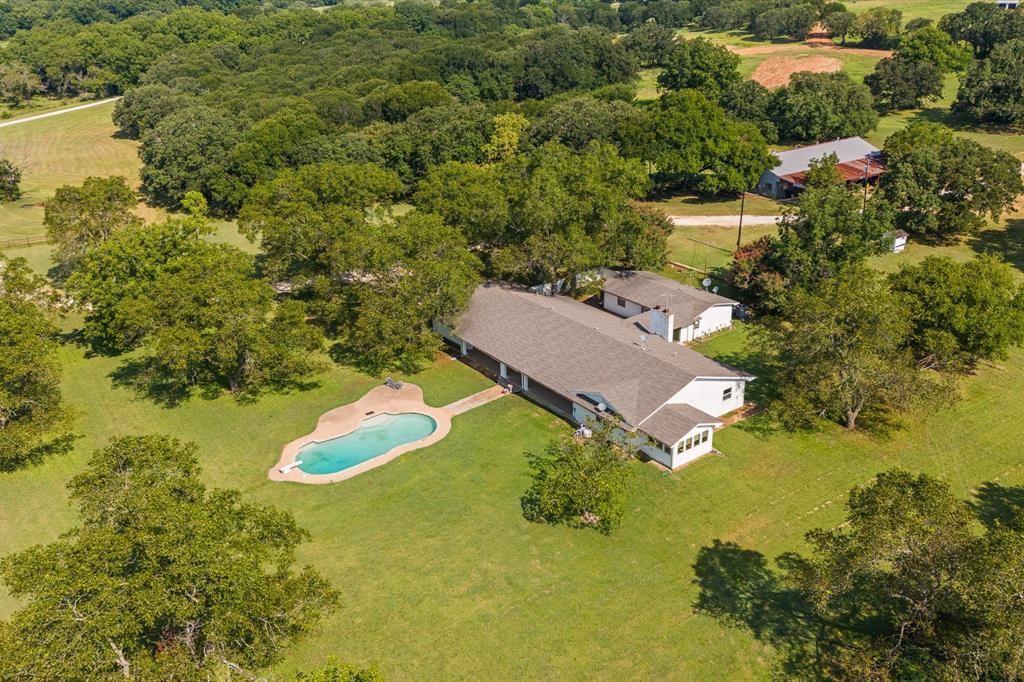 So many possibilities with this property! Large home that would be perfect for entertaining, hosting, or multigenerational living. 800 sf casita connected by indoor breezeway that includes living, bedroom, full bath and kitchen area. Full basement offers 3 bedrooms, 2 full baths and half bath as well as living area and game room (pool table conveys). Very close proximity to I35W but no noise for you to enjoy the quiet serenity of the outdoor areas, pool and large yard. Income producing possibilities with 1bd, 1 ba with kitchen house on property that will need some cleaning. The 80x40 shop with concrete floor and 220 electrical hookup allows for home business or work area. Barn is 100x50 and includes 4 stalls and plenty of storage areas, the different traps and lanes allow for cattle or horse operation. Water well services homes. New driveway is in the process of being covered with asphalt from FM 2258, please allow for trucks.