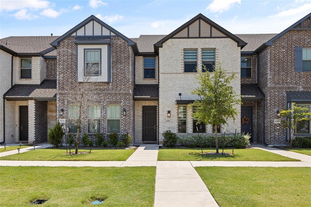 Welcome to 6302 Baritone Court, a stunning two-story townhouse combining modern design with comfort in the heart of Sachse, TX. The exterior boasts a charming blend of light and dark brickwork with elegant architectural details, creating impressive curb appeal. Inside, you’re greeted by an open-concept living space with wood-look flooring throughout the main level. The spacious kitchen is a true showstopper, featuring sleek grey cabinetry, stainless steel appliances, a gas cooktop, subway tile backsplash, and a large island with quartz countertops and pendant lighting—perfect for casual dining or entertaining. The adjoining dining and living areas flow seamlessly, offering plenty of natural light and space for gatherings. Upstairs, you’ll find well-appointed bedrooms, including a luxurious primary suite with an en-suite bath and walk-in closet. The home also offers a two-car garage, energy-efficient features, and modern finishes throughout. Located in a desirable community within Garland ISD, you’ll enjoy easy access to parks, shopping, dining, and major highways.