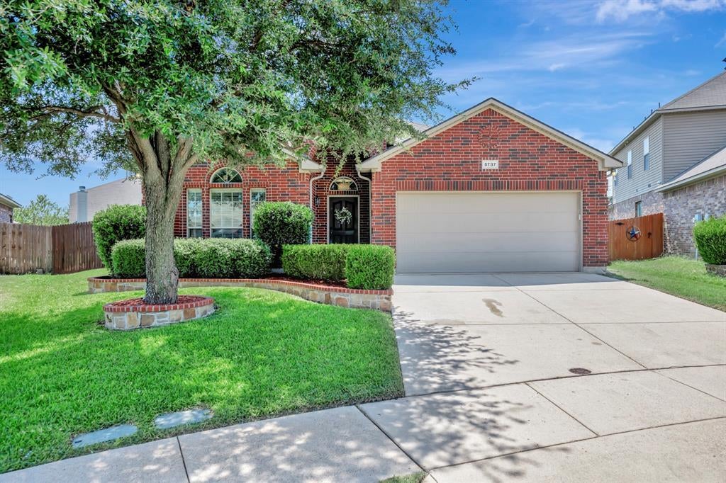 Beautifully maintained brick home in sought-after Northwest Fort Worth, offering a bright open layout and timeless upgrades throughout. The inviting curb appeal sets the tone with lush landscaping, mature trees, and a charming front entry. Inside, the spacious kitchen is a true centerpiece with granite countertops, rich wood cabinetry, an island for extra prep space, and views into the living area which is perfect for everyday living or entertaining. The living room features warm wood-look flooring, crown molding, and a cozy corner fireplace. The private primary suite is filled with natural light and includes a large bath with dual vanities, a soaking tub, separate shower, and a walk-in closet. Three additional bedrooms plus a dedicated office provide flexible space for work, guests, or hobbies. Step outside to the covered patio and enjoy a huge backyard with plenty of room to play, garden, or host summer barbecues. Conveniently located near Eagle Mountain Lake, parks, shopping, and dining, with easy access to major highways for commuting. Schedule your showing today and experience the comfort and convenience this home has to offer.