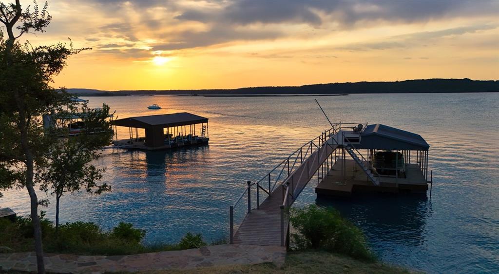 Possum Kingdom Lake Ready to Build Waterfront Lot with a Two Story Dock. Sunsets. Serenity. Your Lakefront Dream Starts Here. Imagine owning over half an acre of level, buildable land framed by a striking custom stone-and-steel handcrafted entrance. Every evening, you’ll watch the sun melt into the horizon over wide-open lake views—perfectly west-facing for postcard-worthy sunsets. And thanks to the natural hillside behind you, you’ll enjoy calm, sheltered waters even on breezy days. Step onto your recently remodeled two-story dock, built with all-new metal for long-lasting strength. Beneath, 20+ feet of deep water awaits. Your brand-new boat lift easily handles vessels up to 27 feet. With no HOA and zero building restrictions, and short term rental income potential, you’re free to create exactly what you envision—whether it’s a custom lakefront retreat, a profitable short-term rental, or both. You’re just 15 minutes from Graham’s shops and restaurants, and minutes from the Peninsula’s best amenities. This is more than a lot—it’s a rare opportunity to own a ready-to-build lakefront property with the perfect view, perfect dock, and perfect freedom to make it yours. Come design your dream lake retreat.