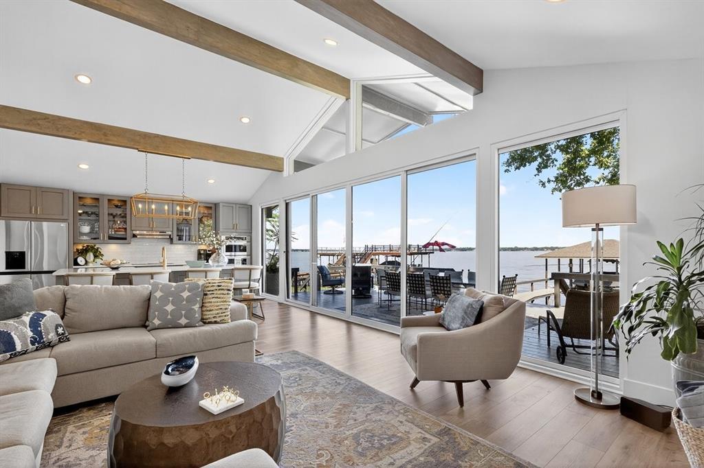 Completely renovated in 2023, this waterfront home offers breathtaking open water views while being protected for boating and water activities on Cedar Creek Lake. The two bedrooms, two baths and chef’s kitchen with oversized island feature premium finishes including designer tile, quartz countertops, sleek LG appliances, under counter icemaker and Arhaus lighting. The home was taken to the studs and includes new windows, plumbing, electrical, raised 11’ ceilings, and vaulted ceiling with wrapped beams in the main living space. The architectural plans include drawings to add a bunkroom downstairs and or add an upstairs over the 800 square foot garage. The electrical panel and plumbing for ½ bath downstairs are already installed. Located in a neighborhood that allows short term rentals, the property offers excellent investment potential, ideal as a weekend getaway, full-time residence, or income producing vacation rental. Enjoy the hard to find combination of prime water access, new luxury upgrades and investment opportunity on Cedar Creek Lake.