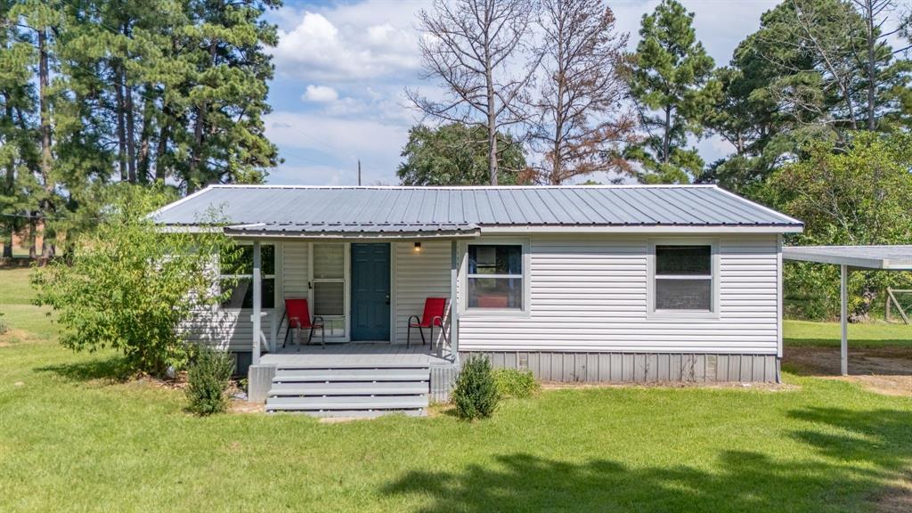 Charming 3-bedroom, 2-bath home with a versatile bonus room in back! Though a mobile home by designation, it was constructed with the feel and quality of a site-built house—featuring upgraded walls, durable flooring, and a sturdy metal roof for peace of mind. Step inside to an inviting open-concept layout that creates a warm and comfortable flow throughout the living, dining, and kitchen areas. The welcoming front porch is perfect for morning coffee or winding down in the evenings, while the bonus room in back provides endless options—use it as an extra bedroom, a second living area, or even a home office. Nestled in a quiet area with an asphalt driveway and convenient frontage on a Farm-to-Market road- no potholes here! This property blends easy living with practical upgrades.