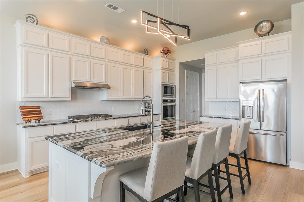 Step into this practically brand new home, perfectly situated on a peaceful greenbelt in the highly sought after master planned Devonshire community. With its thoughtful layout and modern features, this home offers the ideal blend of comfort, functionality, and style. Inside, you will find an open concept floor plan designed for everyday living and entertaining. The spacious living area flows seamlessly into the dining space and gourmet kitchen that features upgraded granite countertops that will be a conversation piece. One of the standout features is the junior primary suite with its own en suite bathroom, providing a private retreat for guests, multi generational living, or anyone seeking extra comfort. The additional bedrooms are generously sized, offering flexibility for a craft room or even a playroom. Outside, enjoy serene greenbelt views with no immediate backyard neighbors, your own private backdrop for morning coffee or evening relaxation. Living in Devonshire means access to resort style amenities, including pools, walking trails, playgrounds, and community events, all while being just minutes from shopping, dining, and top rated schools. This home is truly move in ready and waiting for its next chapter make it yours today!