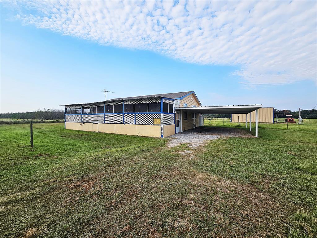 Country home on approximately 9.4 Acres, located about 4 miles outside of Groesbeck with road frontage on FM 2489 and LCR 636. Property features include a home with attached carport, metal building with covered parking or storage area, shipping container for additional storage, private well with well house, small metal shed, nice sized tank and improved pasture for animals or gardening. Home is a well maintained permanently affixed 2 bedroom and 2 bathroom manufactured home built and installed in 2009. Home had additional insulation when manufactured, a 2-year old roof (30-year composition shingle), all electric, central heat and air, aerobic septic system, open floor plan and more! Metal building has water lines and electricity running to it, and was previously used as an additional residence, but will need some work to be livable---or can be converted back into a shop or storage space.