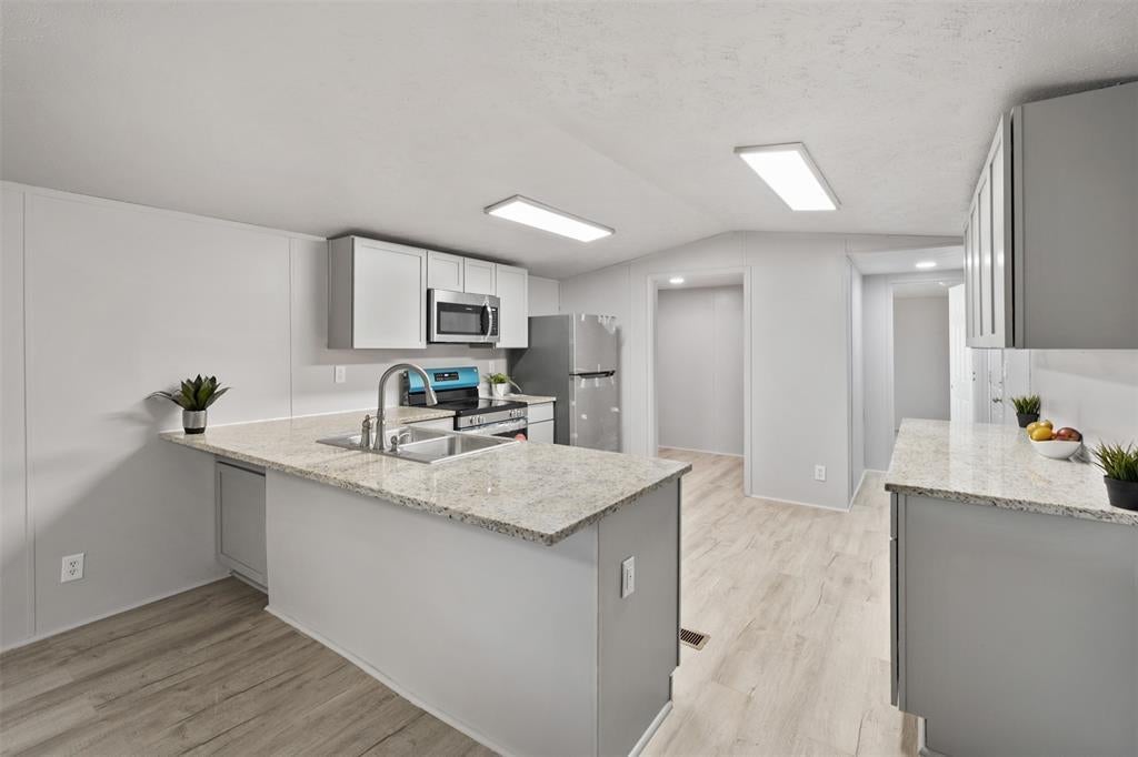 This mobile home is strutting its stuff with brand-new flooring and a fresh coat of paint, flaunting granite countertops like a runway model! The primary bedroom has its own VIP section, away from the others. Be the culinary pioneer on the electric glasstop, with a microwave, dishwasher, and a stainless steel fridge ready to rock. The front greets you with a charming covered porch, while the back boasts a partly covered deck measuring a roomy 32 by 12 feet. Plus, there's a storage building in the back with electricity, measuring 16 by 12 feet, just waiting to be your secret hideaway! Included in the rent is trash service. This owner does not accept housing vouchers.