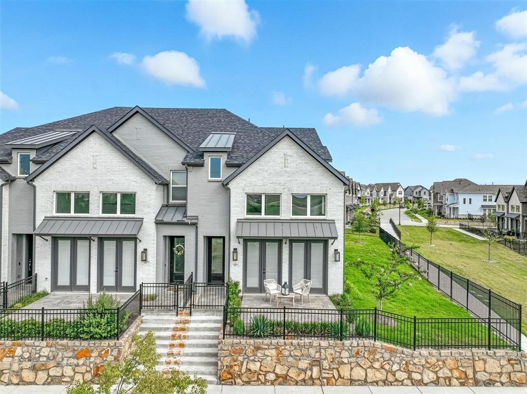 Wonderful, 3 bedroom townhouse in Walsh Ranch. This has it all, it is an end unit with a beautiful courtyard, access to side greenbelt, a front greenbelt and dog park, but is for lease fully furnished or unfurnished. The first floor has tremendous views, a beautiful front courtyard with gated entrance. It also has a very open floor plan with a spacious kitchen island, and gas cooktop. The downstairs living room has lots of natural light and gives you two dining places. Upstairs is a second living area that is right off the landing. There are two bedrooms that share a full bath, one is currently an office and the primary ensuite is quite lovely. Primary bath features an oversized tub and separate shower, while giving you two sinks with very an expansive counter. Then the walk in closet is oversized. There is a half bath downstairs across from the laundry room, right off the two car garage and the garage is not a tandem.