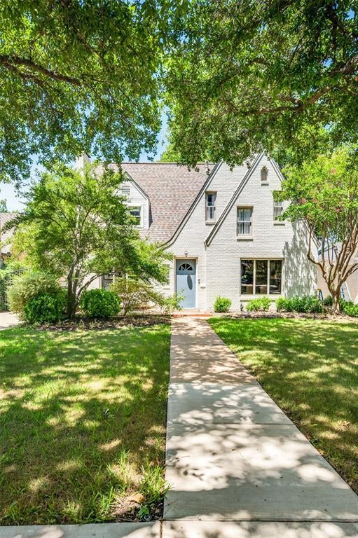 Just steps away from TCU Stadium, this enchanting English Tudor seamlessly blends timeless charm with contemporary elegance. Step inside this delightful three-bedroom, three-bath home and be greeted by arched doorways and rich solid wood floors that exude character and warmth. Natural light pours in through the abundant windows, creating an inviting atmosphere. The heart of the home is the beautifully updated kitchen, featuring sleek stainless steel appliances, luxurious granite countertops, and a cozy breakfast nook with a charming window seat—perfect for morning coffee or casual meals. Throughout the home, you'll discover exquisite designer wallpaper and thoughtfully chosen lighting that elevate the overall aesthetic. Glass doors open from the family room and kitchen to a spacious, fully covered patio, equipped with recessed lighting and ceiling fans, offering a perfect outdoor retreat. With ample room for dining and entertaining, this patio is ideal for gatherings or quiet evenings under the stars. Don’t miss the chance to experience this dreamy home—it’s a must-see!