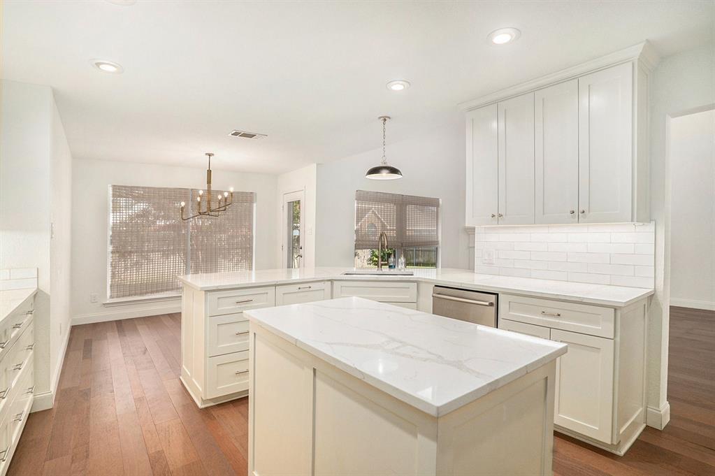 A welcoming two-level foyer sets the tone for the open and functional layout. The kitchen is a cook’s dream, featuring an island, pantry, abundant cabinet space, a breakfast bar, and a clear view into the living room, which is anchored by a cozy fireplace. A breakfast nook and a formal dining room offer multiple options for meals and entertaining. Recent renovations and upgrades include kitchen, all bathrooms, flooring, interior and exterior paint, newer roof, and HVAC systems.