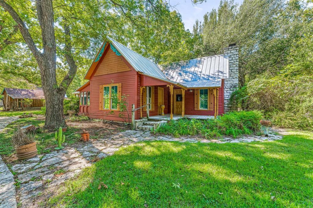 Nestled in a serene landscape, this quaint red wooden cottage with 2-bedroom, 2-bath offers a perfect blend of warmth and rustic charm. The cozy interior features a stone fireplace and original hardwood floors, creating a warm and inviting atmosphere. Large windows throughout the cabin frame picturesque views of the surrounding nature, filling the space with natural light. Adding to the allure is a detached room, ideal for use as a home office, studio, or guest suite, providing flexibility and privacy. Adding to the scene's idyllic charm this property also includes a shed and a spacious storage or barn, perfect for housing tools, equipment, or pursuing hobbies. The cottage is embraced by lush greenery, with verdant grass, various plants, and towering trees creating a serene and inviting atmosphere. A stone pathway meanders through the garden, leading to the welcoming front porch. This charming setting evokes a sense of tranquility and escape, making it the perfect retreat from the hustle and bustle of everyday life. It’s a place where one can imagine spending peaceful afternoons, surrounded by nature and the simple joys of home. This cabin offers a unique opportunity to embrace a country lifestyle while only being minuets from town or would make a great Airbnb.
