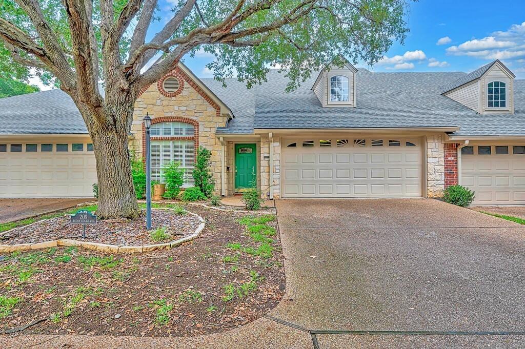Easy living in desirable Pecan Village neighborhood. This well maintained one story, 2 bedroom, 2 bath townhome offers a spacious living room with beautiful hardwood floors, gas log fireplace with remote control, ceiling fan with remote control, recessed lighting, high ceilings and plantation shutters. Dining area is open to the living and kitchen for convenient entertaining. Kitchen has lovely granite counter tops, tile floors, range, dishwasher, disposal, kitchen faucet water filtration system, pantry and eat at bar. Office, computer nook with built in desk and file drawers, is off kitchen. The primary suite has tray ceiling, plantation shutters, walk in closet and access to the manicured backyard. Primary bath has a separate tub and shower and the guest bath has a tub and shower combo. Laundry room has good storage space. Crown molding throughout. Two car garage. HOA covers front and backyard mowing and sprinkler system, exterior maintenance and insurance. Roof recently replaced in 2025, fenced recently replaced and exterior and interior recently painted. $309,000