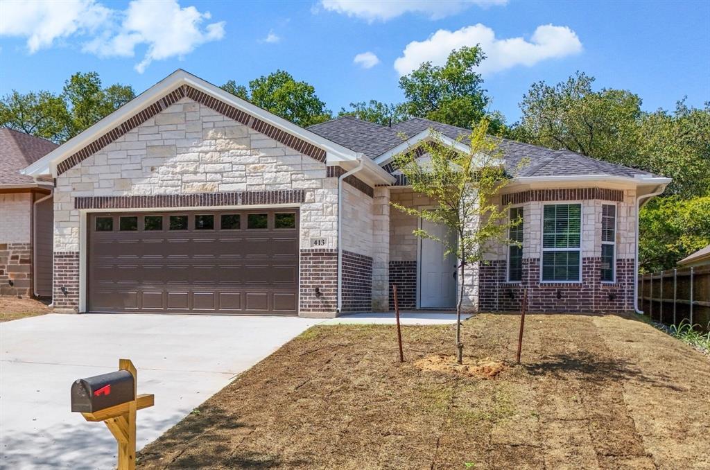 LUXE new construction of brick and stone with ALL the extras. The thoughtful layout is exemplary with tray ceilings, elegant cutouts, recessed lighting, USB-integrated outlets, premium fixtures, remote-controlled lighting, and HGTV finishes. Coordinating white crown molding, 8ft doors and 10ft -11ft ceilings throughout. Modern construction methods ensure energy efficiency without compromising on style. The kitchen impresses with tall soft-close custom cabinetry, stunning granite countertops, window over sink, stainless appliances—including a refrigerator. Sodded yard with privacy fence and planted oaks. Expansive covered patio perfect for relaxing and entertaining. With its thoughtful upgrades and and serene setting, this home offers a rare combination of comfort, elegance, and functionality. Secluded-feel location, walking distance to an expansive city park. Minutes to preferred amenities and downtown square. Ask about the interest rate buy down option to 3.99%.