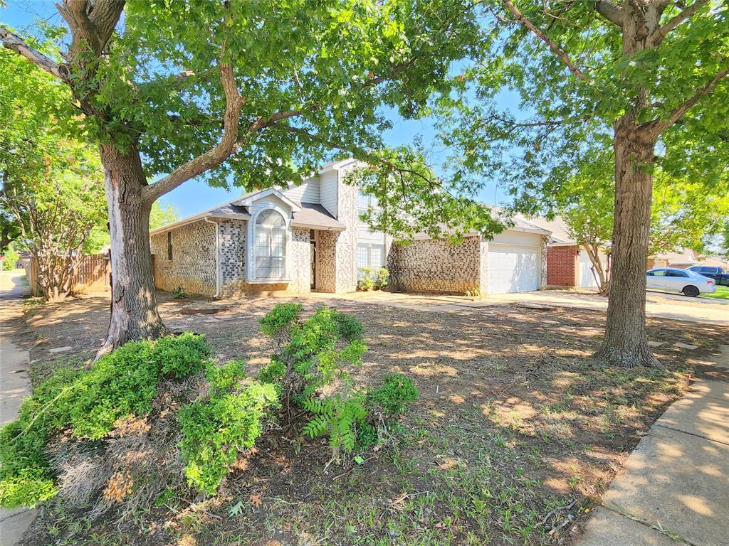 !!NEW ROOF APPROVED BY INSURANCE!! Priced to move quickly, this spacious home offers incredible potential with just a little TLC. Situated on a large corner lot shaded by mature trees, the property includes a fenced backyard and a two-car garage with opener. HVAC replaced with new R410A 4-ton system in 2020. Inside, you’ll find four bedrooms, two and a half bathrooms, and plenty of space for living and entertaining. The home is carpet-free, featuring ceramic tile, luxury vinyl plank flooring, and wood-tread stairs. As you enter, a private office with French doors sits to the right and a formal dining room to the left. Straight ahead, the living room impresses with soaring ceilings, abundant natural light, and a cozy wood-burning fireplace. The kitchen features granite countertops, an electric range, dishwasher, disposal, built-in microwave, water line for your refrigerator, a decent pantry and breakfast nook conveniently located just off the living area. The primary suite is on the main level and includes a full bathroom with dual sinks, shower, separate garden tub, and walk-in closet. Also downstairs are a half bath, laundry room, under-stairs storage and interior access to the front-facing garage. Upstairs, three additional bedrooms share a full bathroom with dual sinks and a combo tub-shower enclosure with sliding glass doors, providing ample space for family or guests. Located in the desirable Meadow Creek community, this home is close to everyday conveniences including Walmart, Albertsons, and a variety of shops and restaurants. Easy access to I-35W, I-20, and Chisholm Trail Parkway makes commuting simple, while nearby attractions like Hulen Mall, The Shops at Clearfork, downtown Fort Worth, and Dickies Arena are just minutes away. This property is being sold as-is and is ready for your personal touch. Foundation previously repaired in 2008 & 2023, no transferrable warranty available.