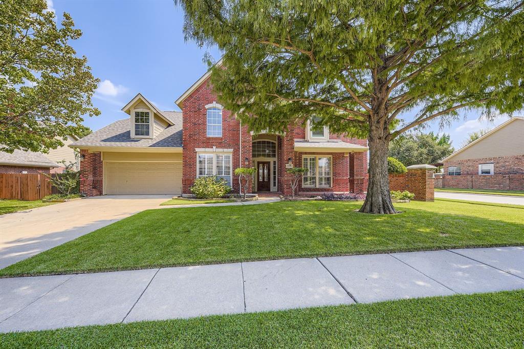 Experience refined living in this beautifully updated Flower Mound home. Elegant formal dining and living spaces set the tone, while the soaring-ceiling main living room with a cozy fireplace creates the perfect gathering space. The newly remodeled kitchen blends style and function with an island cooktop, breakfast bar seating, and seamless flow into the breakfast nook and living room. The primary suite is a private retreat, featuring dual vanities, a walk-in shower, soaking tub, and generous walk-in closet. Upstairs, a media room and three spacious bedrooms provide versatility for family, guests, or hobbies. Outdoors, enjoy a covered patio and fully fenced yard designed for relaxation and entertaining. Ideally located near premier shopping, dining, parks, and trails, with top-rated schools and easy highway access. Upgrades include: new zoysia lawn (2023), whole-home generator with surge protection (2024), new downstairs AC with lifetime warranty (2024), tankless water heater, remodeled primary bath (2021), full kitchen remodel (2025), and custom shutters throughout the main level.