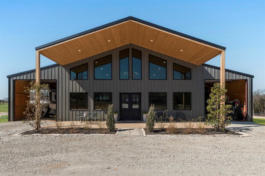 Welcome to luxury ranch living in Gainesville, TX where modern elegance meets country charm. This exquisite barndominium estate spans 3000 sqft. of meticulously designed living space featuring 4 bedrooms, 3 bathrooms, office, and upstairs living space, blending high-end finishes with rustic sophistication. The open floorpan is perfect for entertaining. Nestled on 11 ag-exempt acres, this property is a haven for equestrians, featuring sandy loam soil, a state-of-the-art 5700 sqft horse barn with custom stalls, tack room, and wash bay, 130x180 outdoor arena with two 40x60 attached pens. Mare motel features 4 additional stalls with turnouts. Storage on both side of the home, are perfect to store your trailer, RV, or ATVs. Separate RV hook ups are also available. Expansive no climb fenced pastures, and unparalleled privacy make this a rare North Texas gem. Whether you’re a horse enthusiast or seeking an upscale retreat, this ranch is a dream come true. *this property is NOT in a 100 year or 500 year flood plain*