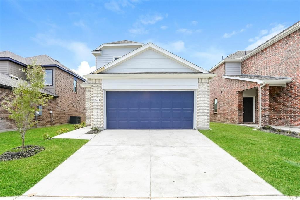The Queensland is a stylish two-story home with 4 bedrooms, 2.5 bathrooms, and an upstairs flex room—perfect for a second living space or playroom. The downstairs primary suite features a private bath with double vanity and a spacious walk-in closet. Upstairs, all secondary bedrooms include individual closets for ample storage. Other highlights include a modern kitchen that opens to the family room and breakfast area, a two-car garage, and a fully fenced backyard. Wood-style flooring throughout adds a touch of warmth and elegance. All homes are SimplyMaintained for a $100 monthly fee that includes front and back yard lawn care and exterior pest control. Christian Meadows is a quiet, family-friendly neighborhood in Ennis, TX, with easy access to Highway 287 for convenient commuting. The community is part of the Ennis Independent School District, offering excellent schools nearby. Residents enjoy local shopping and dining, with Bluebonnet Park just a short drive away, perfect for outdoor activities and relaxation. Christian Meadows offers a peaceful suburban lifestyle with convenient access to local attractions and amenities.