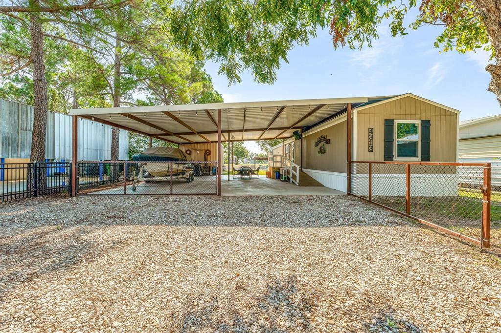 Welcome to 4313 Cottonwood Ct, a charming 2022 singlewide manufactured home located just off the shores of Lake Granbury. This 3-bedroom, 2-bath home offers 1,064 square feet of comfortable living space with an open-concept design that seamlessly connects the kitchen and living room, creating a warm and inviting space for relaxing or entertaining. Outside, you’ll find a 19x11 metal workshop with an overhead door—perfect for projects, storage, or lake toys—and a spacious 2-car covered carport that doubles as a shaded patio for outdoor gatherings. Enjoy peaceful mornings and beautiful sunsets from your very own private fishing dock, offering the ideal spot to unwind and take in the lake views. Nestled on a quiet cul-de-sac, this property offers the perfect blend of tranquility, recreation, and convenience. Whether you’re looking for a weekend retreat, a full-time residence, or an investment opportunity, this move-in ready home invites you to start living the Lake Granbury lifestyle.